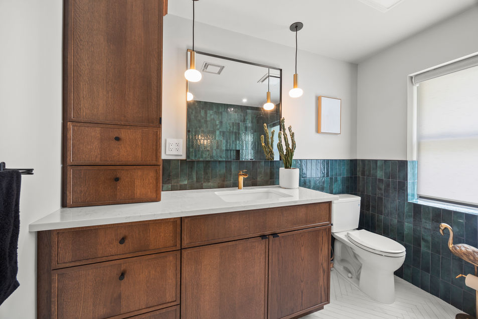 What was once a dated 1980s house is now a sleek, modern home filled with life and personality. The James Revival project was guided by our client’s vision for something modern, fun, and organic. Clean lines, natural textures, and playful details came together to create a space that feels both contemporary and inviting.